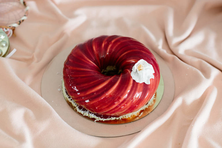 Les entremets sont disponibles en 8 parts, si vous souhaitez un dessert pour un plus grand nombre d’invités, je vous invite à visiter la page Sur Mesure 🙂